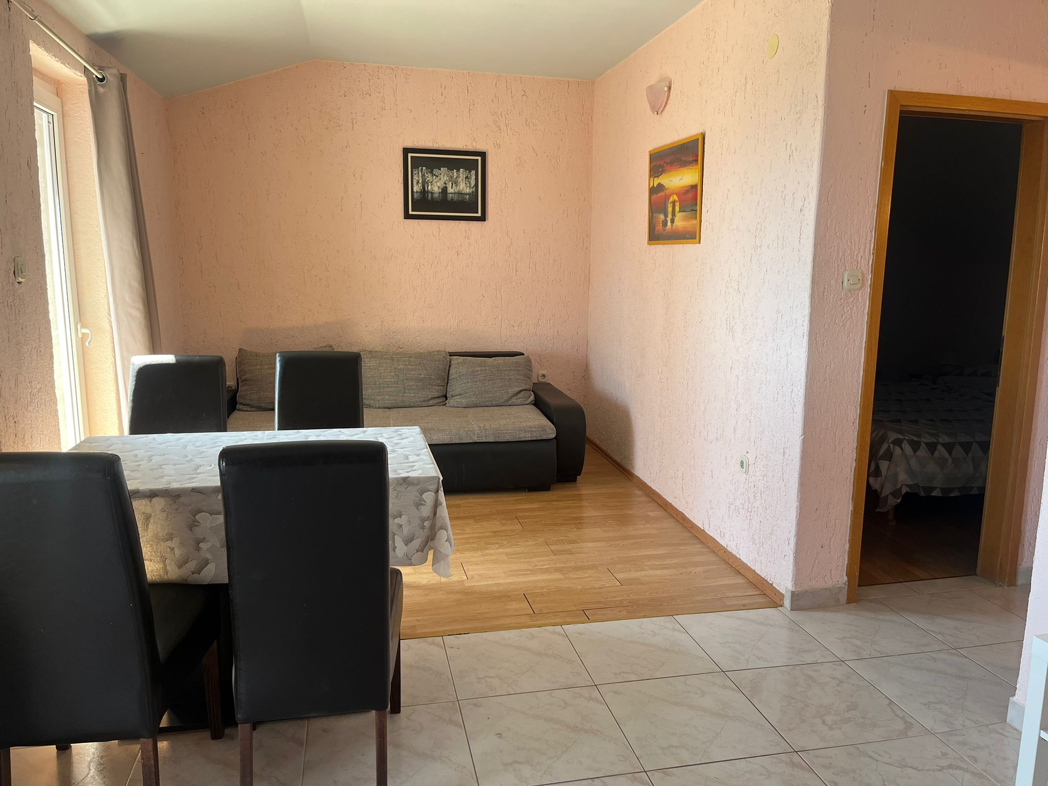 Apartment can accommodate 4 guests. Beds are situated in 1 sleeping rooms, but also in the living room, within 33m2. Guests can use a private terrace to enjoy the warm summer evenings. The apartment offers the sea view. This accommodation unit welcomes pets at an additional charge. INCLUDED IN THE PRICE: tourist tax, final cleaning, air-conditioning, parking, internet, baby cot, hairdryer. OBLIGATORY ADDITIONAL COSTS: short stay fee (surcharge depending on a number of booked nights: 30% - 1, 20% - 2, 10% - 3). OPTIONAL ADDITIONAL COSTS: laundry (€5.00 washing), pets (€5.00 per night). The availability of additional services for your chosen dates of stay, as well as their prices (if none are listed) must be checked ahead of time. Any additional services not shown in the price calculation are payable directly to the property owner and only if used by the visitor.