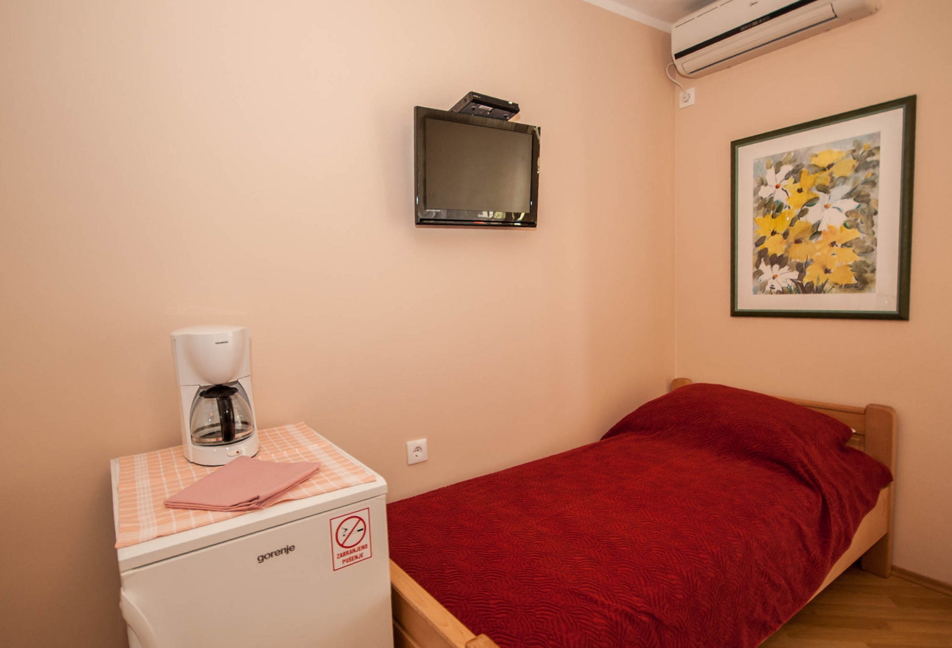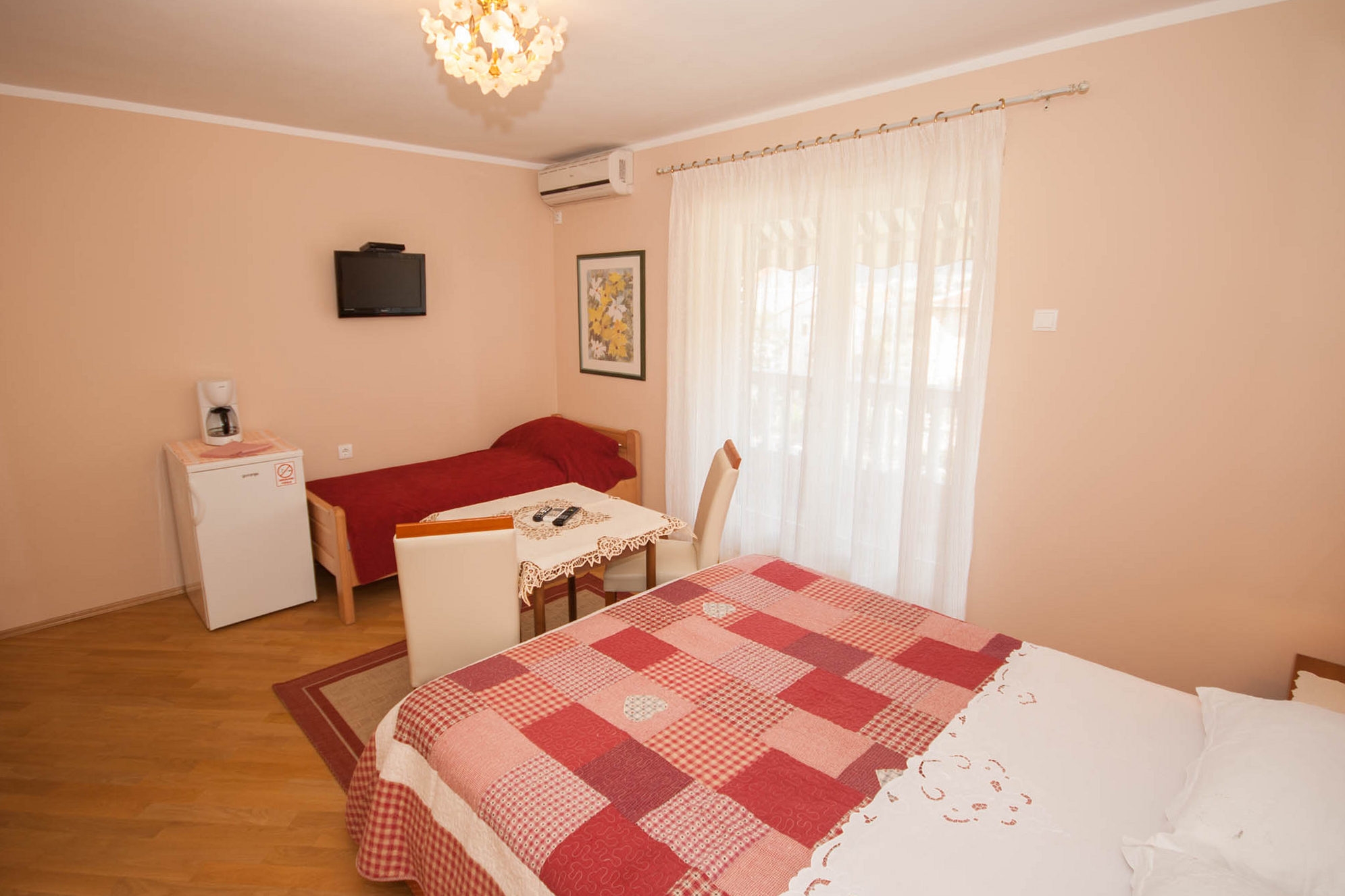 Room can accommodate 2 guests. Beds are situated in 1 sleeping rooms, within 19m2. Guests can use a private balcony to enjoy the warm summer evenings. Reserved accommodation unit is a room with its own bathroom and there is no usage of kitchen. INCLUDED IN THE PRICE: tourist tax, final cleaning, air-conditioning, parking, internet. OPTIONAL ADDITIONAL COSTS: 1 bed for children (€12.00 personnight). The availability of additional services for your chosen dates of stay, as well as their prices (if none are listed) must be checked ahead of time. Any additional services not shown in the price calculation are payable directly to the property owner and only if used by the visitor. Discounts to the base price: free day 21=19 (for reservations of 21 or more days you get 2 free days for the stay until 31122026).