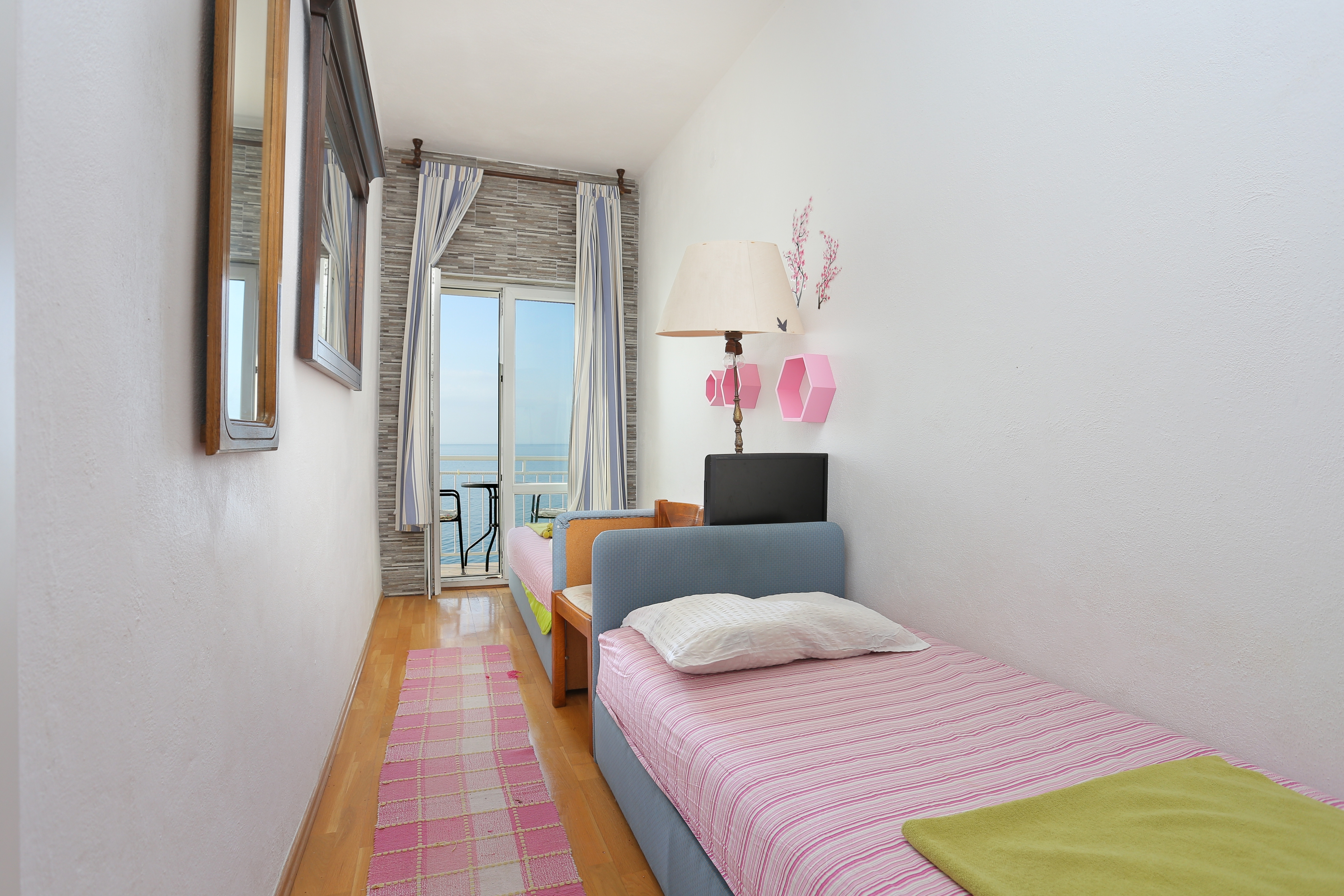 Apartment can accommodate 4 guests. Beds are situated in 2 sleeping rooms, within 36m2. Guests can use a private balcony to enjoy the warm summer evenings. The apartment offers the sea view. Food can be prepared using barbecue which is shared with other guests too. This accommodation unit welcomes pets at an additional charge. INCLUDED IN THE PRICE: tourist tax, final cleaning, air-conditioning, parking, iron, ironing board, hairdryer. OBLIGATORY ADDITIONAL COSTS: short stay fee (surcharge depending on a number of booked nights: 30% - 1, 20% - 2, 10% - 3). OPTIONAL ADDITIONAL COSTS: laundry (€5.00 washing), pets (€15.00 per night). The availability of additional services for your chosen dates of stay, as well as their prices (if none are listed) must be checked ahead of time. Any additional services not shown in the price calculation are payable directly to the property owner and only if used by the visitor.