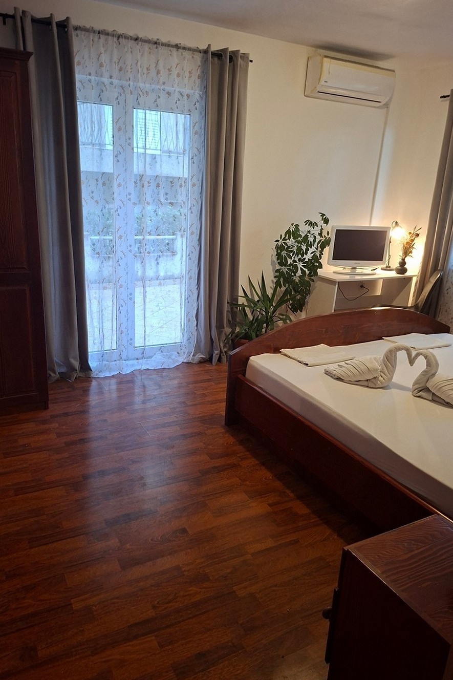 Apartment can accommodate 5 guests. Beds are situated in 2 sleeping rooms, within 41m2. Guests can use a private terrace to enjoy the warm summer evenings. Food can be prepared using barbecue which is shared with other guests too. INCLUDED IN THE PRICE: tourist tax, final cleaning, air-conditioning, parking, internet, laundry, iron, ironing board, hairdryer, portable barbecue. OBLIGATORY ADDITIONAL COSTS: short stay fee (surcharge depending on a number of booked nights: 30% - 1, 20% - 2, 10% - 3). The availability of additional services for your chosen dates of stay, as well as their prices (if none are listed) must be checked ahead of time. Any additional services not shown in the price calculation are payable directly to the property owner and only if used by the visitor.
