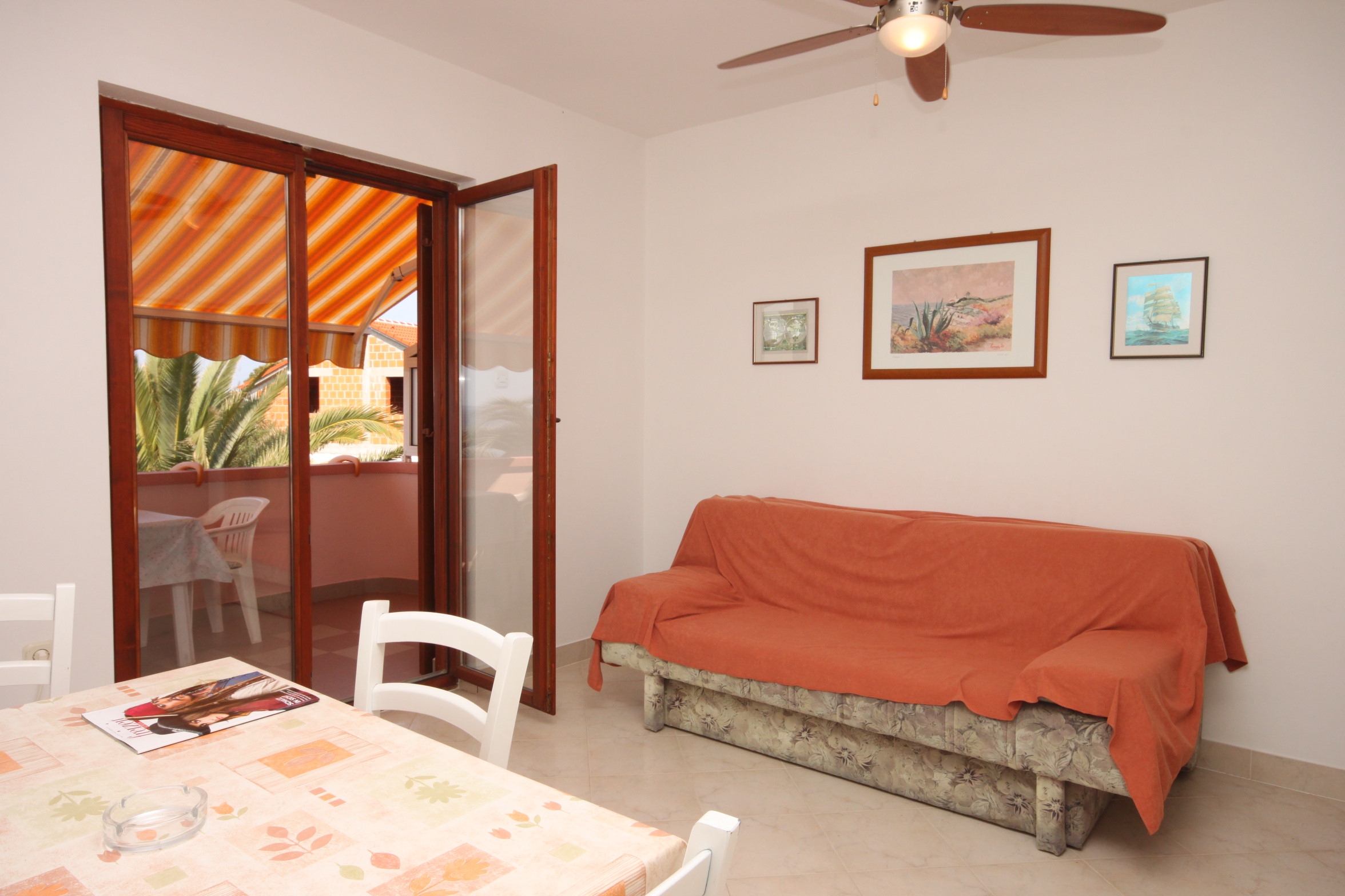 Apartment can accommodate 4 guests. Beds are situated in 1 sleeping rooms, but also in the dining room, within 35m2. Guests can use a private terrace to enjoy the warm summer evenings. The apartment offers the sea view. Food can be prepared using barbecue which is shared with other guests too. INCLUDED IN THE PRICE: tourist tax, final cleaning, air-conditioning, parking, internet. OBLIGATORY ADDITIONAL COSTS: short stay fee (surcharge depending on a number of booked nights: 30% - 1, 20% - 2, 10% - 3). OPTIONAL ADDITIONAL COSTS: boat mooring (€10.00 per night). The availability of additional services for your chosen dates of stay, as well as their prices (if none are listed) must be checked ahead of time. Any additional services not shown in the price calculation are payable directly to the property owner and only if used by the visitor.
