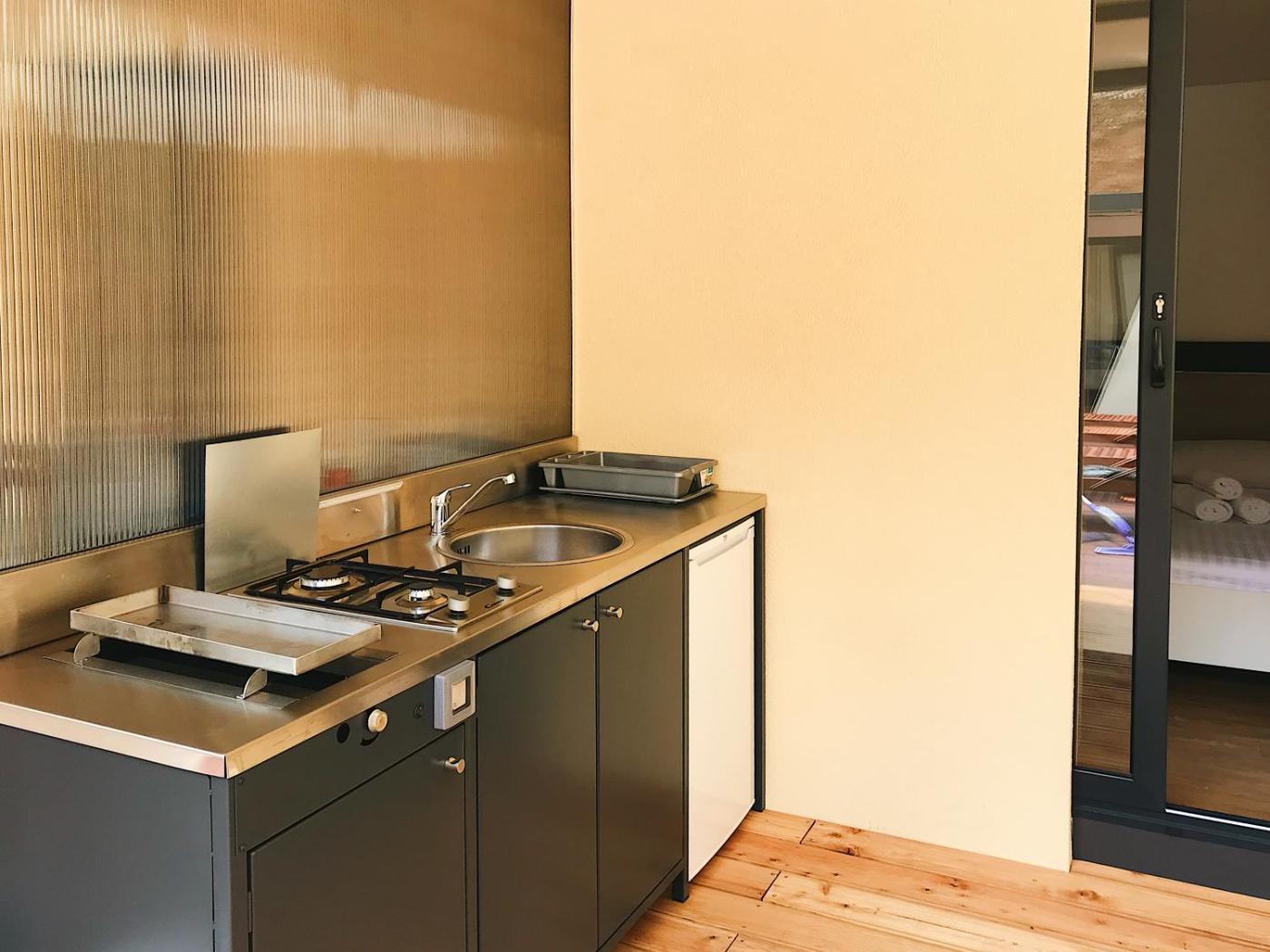 Suite with Pool View. Boasting a private entrance, this air-conditioned suite features 1 living room, 1 separate bedroom and 1 bathroom with a walk-in shower and a hairdryer. Guests will find a stovetop, a refrigerator and kitchenware in the kitchen. The suite also comes with a barbecue. Featuring a terrace with pool views, this suite also features a washing machine and a flat-screen TV with satellite channels. The unit has 2 beds. ;