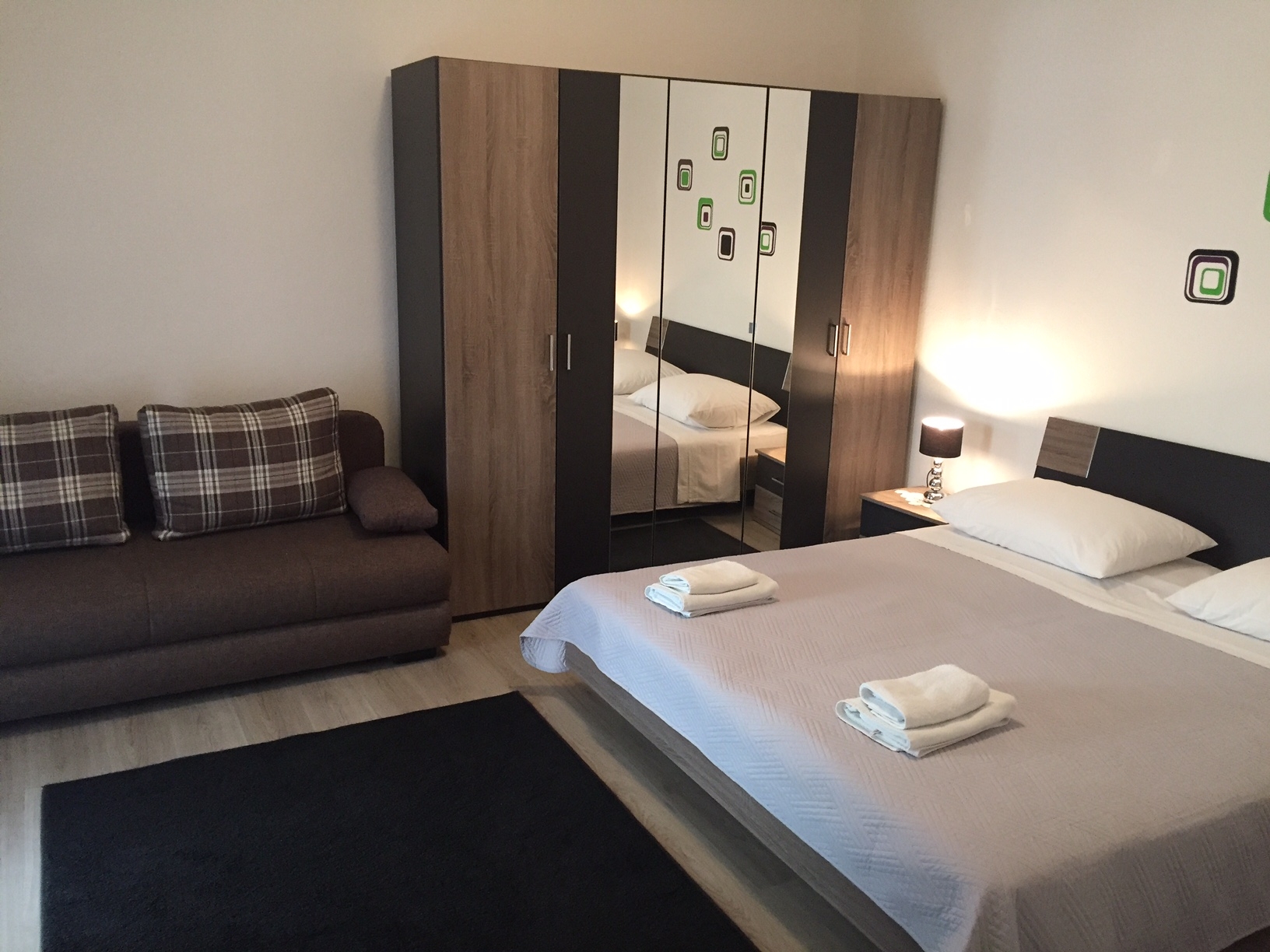 Apartment can accommodate 7 guests. Beds are situated in 3 sleeping rooms, within 84m2. Guests can use a private terrace to enjoy the warm summer evenings. The apartment offers the sea view. Food can be prepared using barbecue which is shared with other guests too. This accommodation unit welcomes pets at an additional charge. INCLUDED IN THE PRICE: tourist tax, final cleaning, air-conditioning, parking, internet, baby cot, iron, ironing board, hairdryer, portable barbecue, sunchairs. OBLIGATORY ADDITIONAL COSTS: short stay fee (surcharge depending on a number of booked nights: 30% - 1, 20% - 2, 10% - 3). OPTIONAL ADDITIONAL COSTS: laundry (€15.00 washing), pets (€5.00 per night), additional bed (€10.00 per night). The availability of additional services for your chosen dates of stay, as well as their prices (if none are listed) must be checked ahead of time. Any additional services not shown in the price calculation are payable directly to the property owner and only if used by the visitor.
